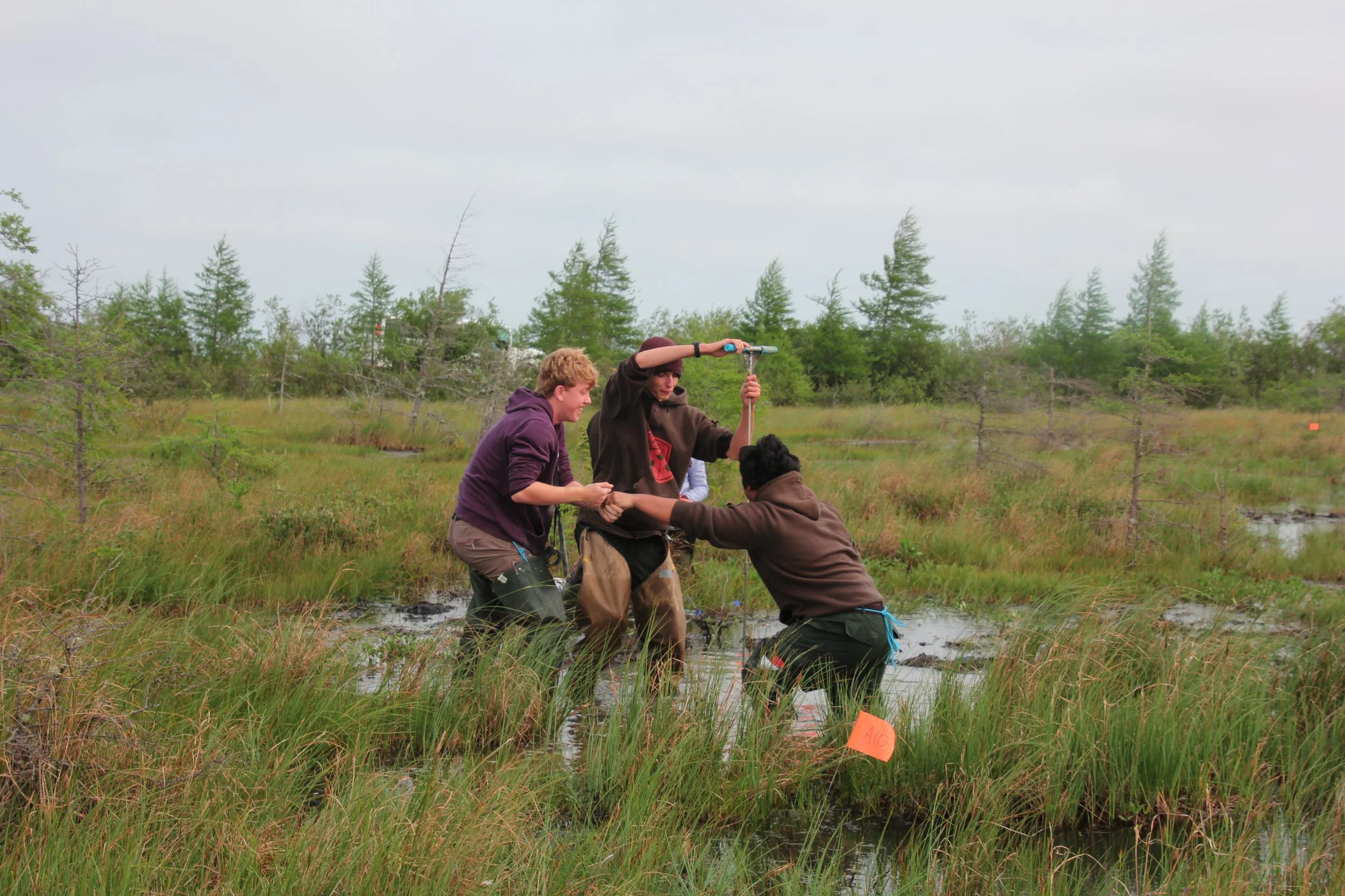 After the impressive speaker, we had planned to go paddle boarding with the belugas in the Hudson bay, but due to weather and other changes, we had to reschedule. Instead, we decided to hit another site. The site was a fen and was super wet, sometimes the probes never even made it to the permafrost. It was that deep! The site took us a while because of how challenging the terrain was, so after that we went home for a delicious dinner of Pirogies and sausage. The night did not end there though!